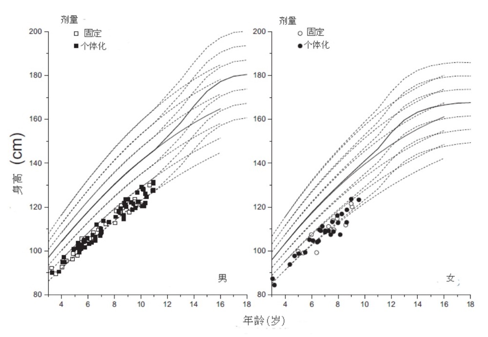 背景:在GH缺乏或特发性矮身高儿童,依据体重的GH剂量引起生长反应的宽大可变性。